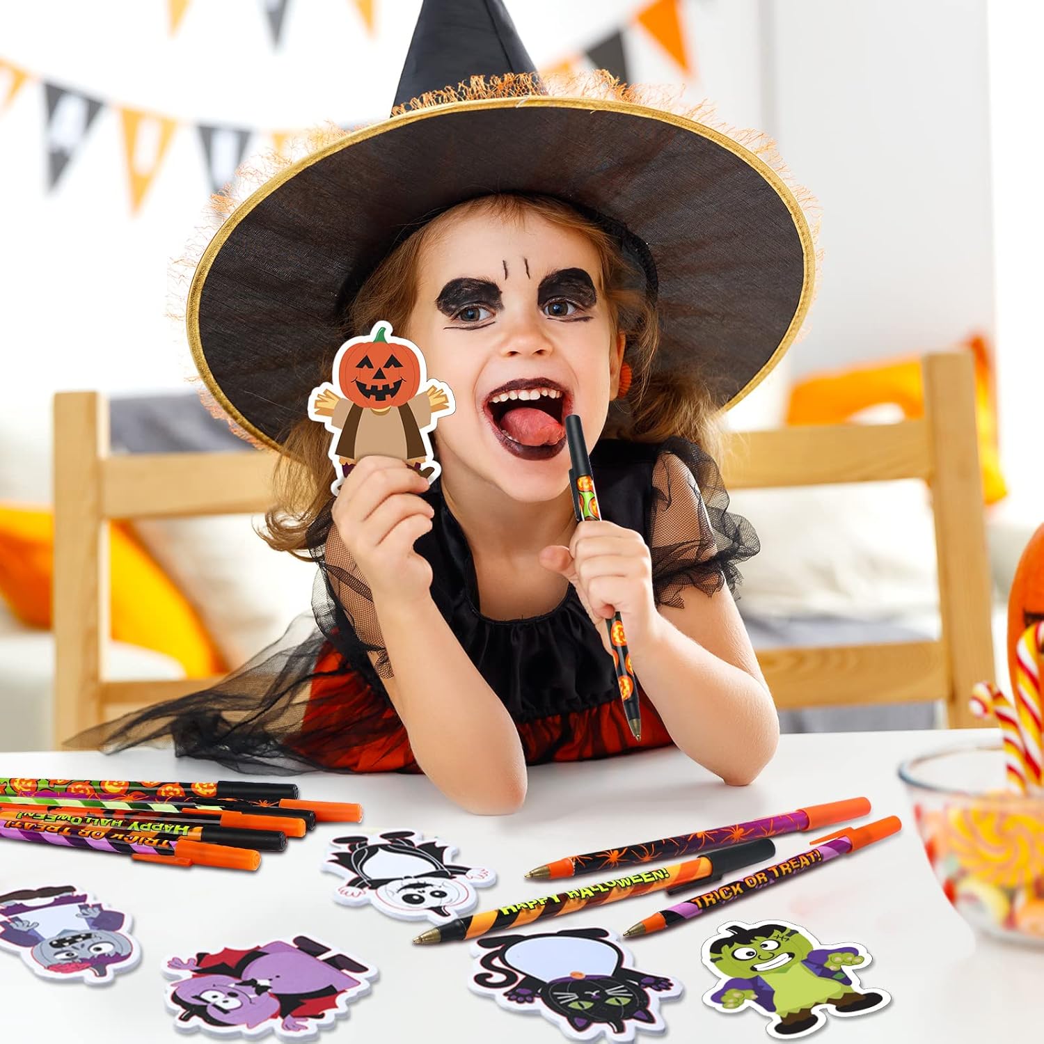 Wide Application: these Halloween cartoon pens and pumpkin sticky notes can be applied on a variety of occasions, they can be applied as Halloween party gifts rewards for kids, friends, family, teachers, student, and also can be applied in office, home or school for the daily use