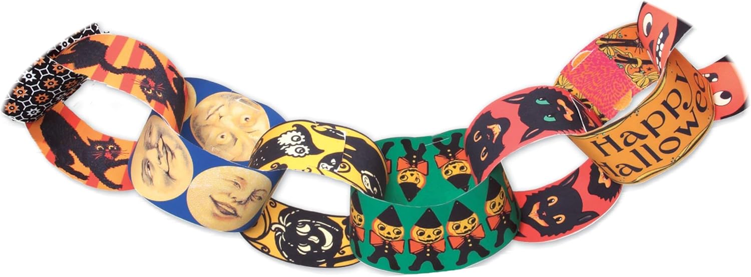eeBoo’s Halloween Paper Chain kit is the perfect way to decorate for favorite ghouls and goblins. Each set includes 120 links that form a chain that is 24 feet long! Each paper link is 10.75 x 2″ and is illustrated with Halloween graphics that make this festive holiday so fun.