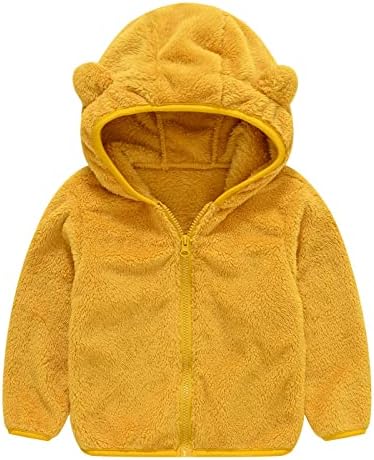 Toddler Baby Hooded Jacket Fleece Hoodie Warm Coat Bear Ear Cute Coat Solid Color Hoodie Jackets with Ears Pocket for Boys Girls Faux Fur Fleece Warm Up Teddy Coat Clothes Kids Wool Light Jacket Sweatshirt Warm Winter Outwear