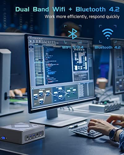 【Stable connection, fast transmission】The mini desktop comes with 1x USB-C port, 4x USB 3.0 ports and 2x USB 2.0 ports for easy connection of various devices, USB-C port support 10Gbps Super speed data transfer. WiFi 2.4G+5G Dual Band networking ensures stable, high-speed data transfers, even in crowded networking environments. Bluetooth 4.2 connect faster Speed, Farther Coverage.